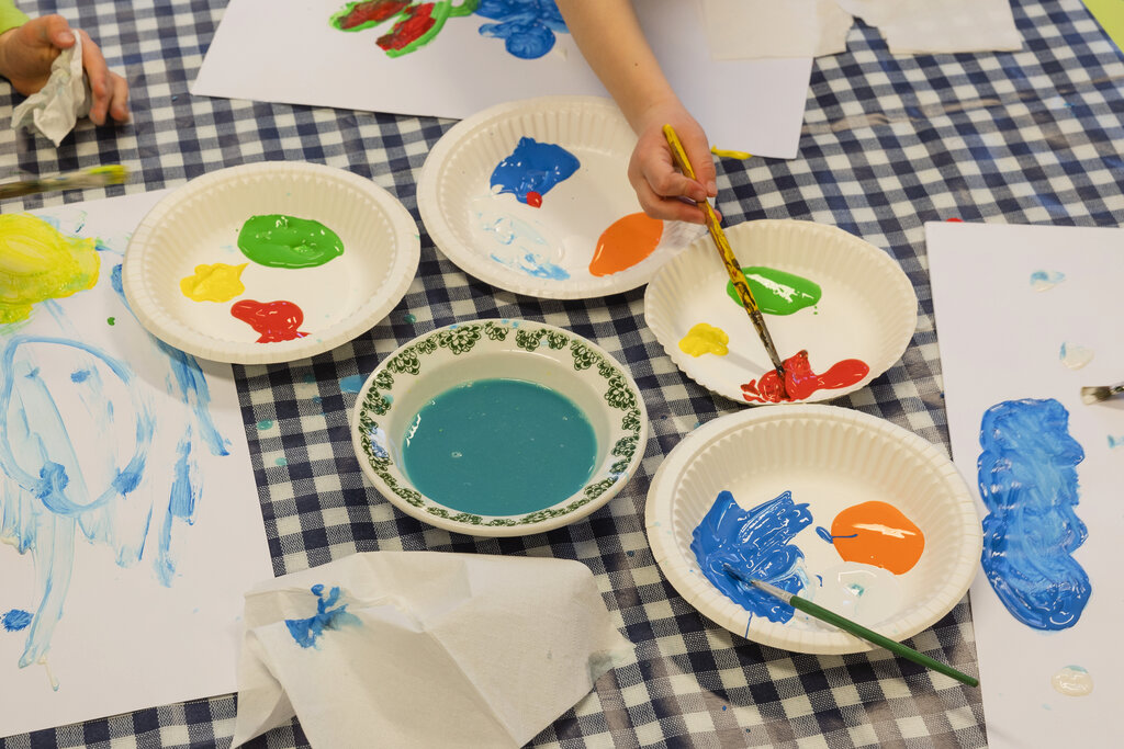 Barn maler som aktivitet i Løvenstad barnehage. Maling er en inkluderende aktivitet for barna.
