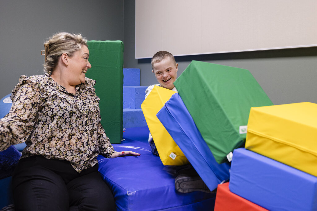 Elev Jonas Sandvik og lærer i lek på Fjerdingby ressursavdeling
