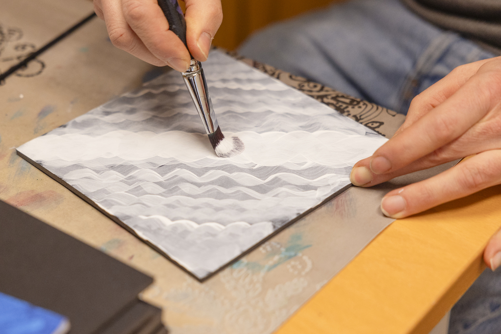 Brukere av Løkta sine tilbud i gang med å lage kunstverket "Frihet" til deres nye lokaler på rådhuset.