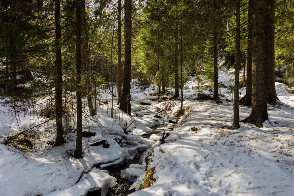 En liten bekk i Rælingsmarka, ved Bjønnåsen og Marikollen