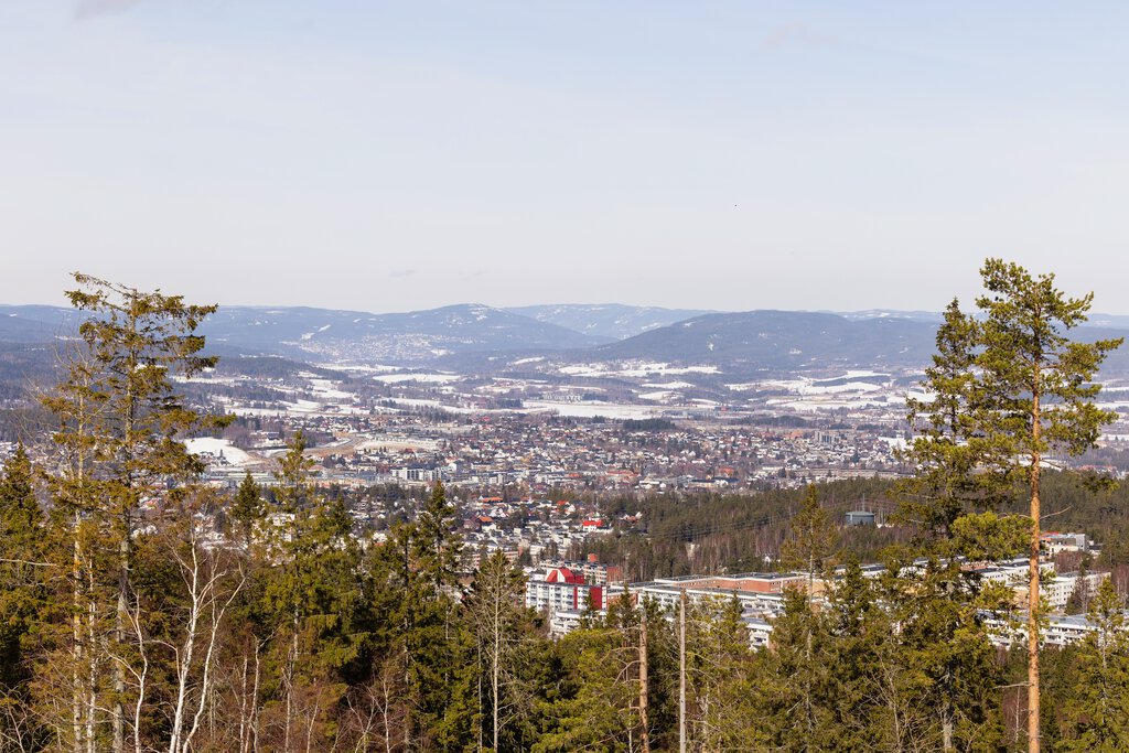 Utsikt mot Øvre Romerike fra Marikollen, med Blystadlia i forgrunnen.