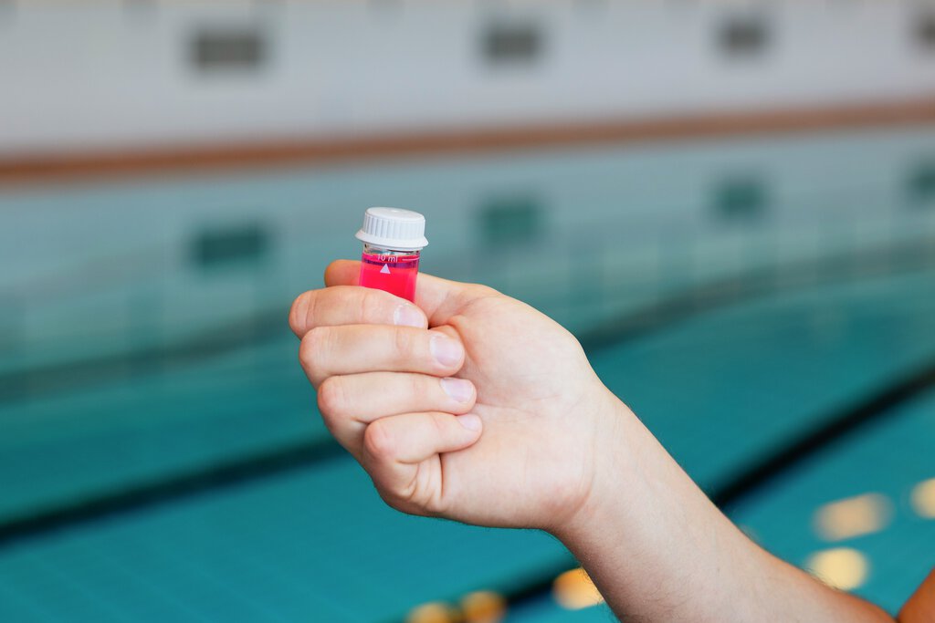 Vannprøve for å sjekke klornivået i vannet i Sandbekken bad.